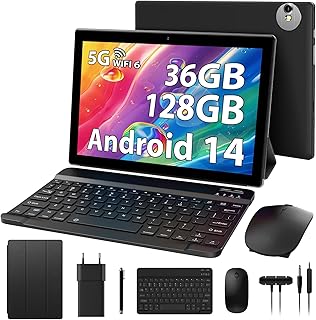 RUSHAR Newest Tablet 10 Pulgadas Android 14 con 5G WiFi 6,36GB RAM+128GB ROM (TF 1TB),2.0Ghz,8000mAh,Doble Cámara,8MP+5MP,Bluetooth,Tablet con Teclado,Negro