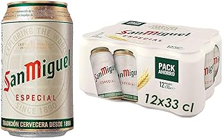 Pack 12 latas de 33 cl cada una: cerveza San Miguel Especial, cerveza dorada lager, elaborada con experiencias, conquistando el mundo gracias a su sabor y espíritu aventurero desde 1890, con 5.4% de alcohol. Para un mayor disfrute se recomienda consumir entre 4º y 6º C