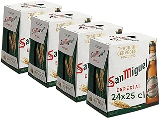 Pack 24 botellines de 25 cl cada uno: cerveza San Miguel Especial, cerveza dorada lager, elaborada con experiencias, conquistando el mundo gracias a su sabor y espíritu aventurero desde 1890, con 5.4% de alcohol. Para un mayor disfrute se recomienda consumir entre 4º y 6º C