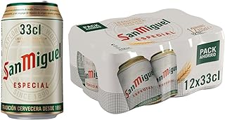 Pack 12 latas de 33 cl cada una: cerveza San Miguel Especial, cerveza lata dorada lager, elaborada con experiencias, conquistando el mundo gracias a su sabor y espíritu aventurero desde 1890, con 5.4% de alcohol. Para un mayor disfrute se recomienda consumir entre 4º y 6º C