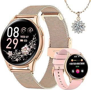 👑Una Obra de Elegancia Cautivadora: El Sanorum reloj inteligente mujer de 1.27 pulgadas, compacto y de alta definición, se adapta a cualquier ocasión con su diseño de doble correa. Además, el exclusivo diseño de flor de sol realza aún más la elegancia de la cadena de zirconia cúbica. Tanto el reloj mujer como la cadena no solo son accesorios de moda, sino también artículos imprescindibles para la vida diaria y la mejor elección para expresar tu amor a esa persona especial.