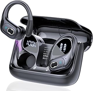 Pantalla LED y 75 horas de reproducción: El cascos bluetooth utiliza tecnología de pantalla LED para mostrar con precisión la energía restante del auricular inalámbrico Bluetooth y la caja de carga. Con la tecnología de carga rápida USB-C, le ofrece una carga más rápida y estable. Cada auriculares para correr puede jugar durante 15 horas con una sola carga, y la funda de carga proporciona 3 cargas adicionales, lo que hace que los cascos running tengan un tiempo de reproducción total de 75 horas.