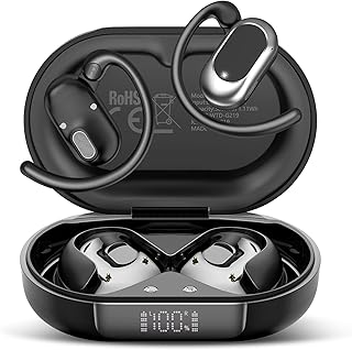 STECEi Auriculares Oreja Abierta Bluetooth 5.4, 2025 Auriculares Inalámbricos Deportivos con Gancho, 38H Estéreo Inalambricos Bluetooth con Pantalla LED, Control Táctil, IP7 Impermeable