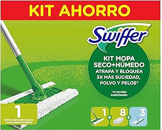 El kit incluye 1 mopa, 8 recambios secos y 3 recambios húmedos