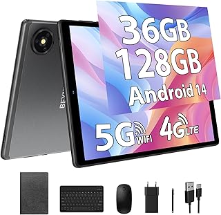 Tablet 10 Pulgadas Android 14 Tableta con 4G LTE y 5G WiFi,36GB RAM+128GB ROM,FHD1920 * 1200 incell,8000mAh,13+8MP,GPS,Face ID,USB-C,con Teclado + Ratón + Funda,Nero