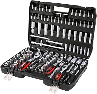 TEENO Juego de Llaves de Vaso para Llaves de Carraca 1/2" y 1/4" y 3/8" Trinquete (72 Dientes) 172 piezas, Cr-V,Kit de Herramientas Mecánicas para el Auto – Satinado Mate
