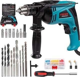 5. Incluye: taladro de impacto universal de 710 W, mango extra, tope de profundidad y maletín de transporte, 3 brocas para madera, 3 brocas para hierro, 3 brocas para pared, 6 puntas de destornillador, 1 llave de tubo, 1 vaso, 1 caja de tornillos, 1 manual (francés no garantizado).