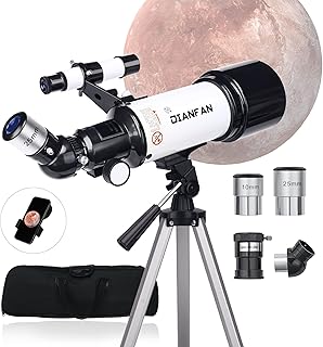 ✌【Óptica Perfecta】: Apertura de 70 mm y distancia focal de 400 mm, lente de vidrio de óptica totalmente revestida con revestimientos de alta transmisión película azul de banda ancha multicapa, hacer la visión clara y brillante y proteger sus ojos.Excelentes telescopios para la astronomía de los adultos.