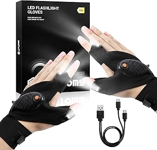 ThxToms Flashlight Gloves Rechargeable, Valentines Day Birthday for Men Husband Boyfriend Dad Him, Cool Gadgets Tools Finger Lights Waterproof for Repairing Fishing