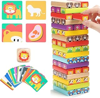 DIVERSION SIN FIN: Con nuestra torre de bloques de madera, ¡la imaginación no tiene límites! Incorpora 3 variaciones para disfrutar en familia: Juego de construcción de torres de bloques; dominó; uso de cartas para dibujar bloques