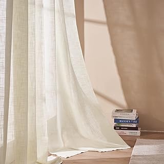 Material:Hecho de Pólister 100%, la cortinas salon tiene el tejido lino imitativo suave y resistente que otras telas de visillos. Tiene mejor calidad y es más difícil de deformar. Mano de obra fina, pequeñas marcas de costura.
