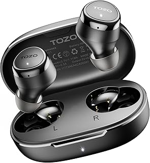 TOZO E1 Auriculares Inalámbricos Bluetooth 5.3 con ENC Llamadas Ultraligero EQs Ajuste 30H Reproducción USB Tipo C IPX6 Negro