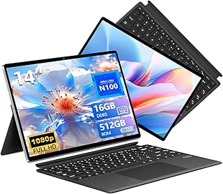 GráFicos Extraordinarios: Portátil 2 en 1 está equipado con una pantalla IPS FHD 1920*1200 de 14 pulgadas, que proporciona detalles nítidos, efectos visuales realistas y le brinda una experiencia visual extraordinaria. La relación de pantalla de borde estrecho de 16:10 aumenta el área de la pantalla, lo que hace que la máquina sea más tecnológica y moderna.