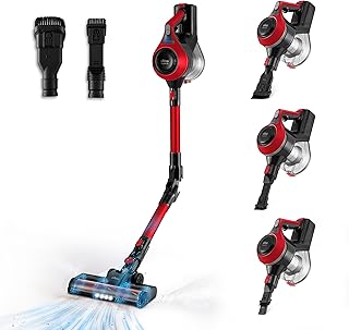 BATERÍA DE LARGA DURACIÓN Y CARGA RÁPIDA. Equipado con una batería Li-ion extraíble de 2200mAh y un voltaje de 22.2V, ofrece una autonomía máxima de hasta 40 minutos, con un tiempo de carga rápido de tan solo 5 horas, lo que te permite realizar sesiones de limpieza prolongadas sin tener que preocuparte por recargarla constantemente. Esto es especialmente útil para limpiar áreas grandes o realizar tareas de limpieza extensas en toda la casa