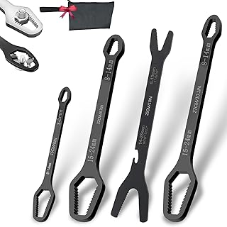 Universal Torx Wrench Set, Double Head Self Tightening Spanner 3-25mm Chrome Vanadium Steel All in One Hand Tool for Car Bicycle Repair, 4-5pcs with Oxford Bag (Black, A+B+D+E)