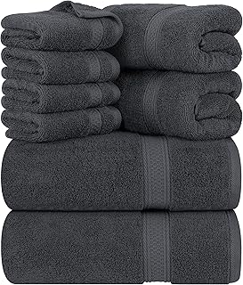 Pack de 8 – Nuestro económico juego de toallas contiene: 2 toallas de baño de 69 x 137 CM cada una 2 toallas de mano de 41 x 71 CM cada una y 4 toallitas de 30 x 30 CM cada una. Disfrute de una experiencia de spa con nuestro juego de toallas lujosamente suave y absorbente.
