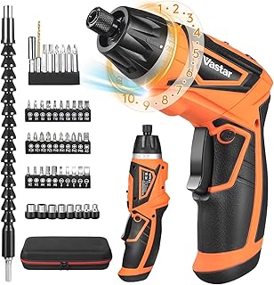 Potente motor de 7,2 V/320 RPM y ajuste de par 10+1 El destornillador eléctrico Vastar tiene un potente motor de 7,2 V, que proporciona una velocidad sin carga de hasta 320 RPM y un par de apriete de 5,5 Nm (el par máximo en modo manual es de hasta 10 Nm). Las configuraciones de par de ajuste 10+1 permiten un fácil control de la velocidad y la fuerza del par para superar diferentes resistencias en diferentes tareas de trabajo.