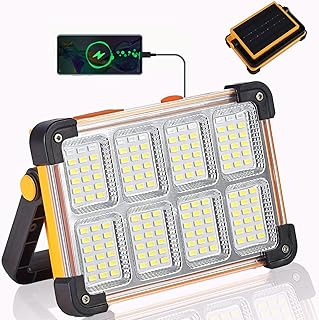 Vcwtty 120W LED Solar Work Light, 144 LED 10000LM Portable Flood Light with Stand, 4 Modes Rechargeable, IP65 Waterproof Outdoor Working Light for Camping, Fishing, Car Repair & Mechanics (1)