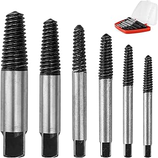 TAMAÑOS DE TORNILLOS: El juego “forza extractor de tornillos” contiene diferentes tamaños: 3 – 6 mm (1/8 – 1/4) | 6 – 8 mm (1/4 – 5/16) | 8 – 11 mm (5/16) – 7/16) | 11 – 14 mm (7/16 – 9/16) | 14 – 19 mm (9/16 – 3/4) | 19 – 25 mm (3/4 – 1).