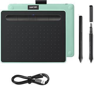 Contenido del envío: Wacom Intuos S Tableta gráfica / Lápiz digital sin pilas con 3 puntas estándar adicionales / Cable USB / Herramienta de extracción de puntas / Guía rápida/ Color pistacho