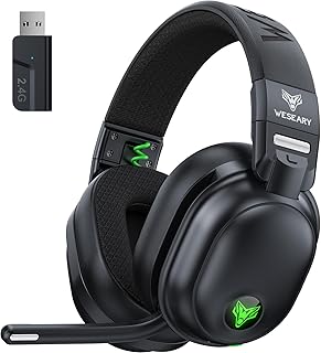 🏆【Domina el Reino del Sonido】Entra en un nuevo reino de excelencia auditiva con el auricular gaming inalámbrico WESEARY. El controlador de 50 mm con recubrimiento de titanio reproduce graves profundos y agudos claros, resaltando cada detalle, desde las voces y pasos de tus compañeros hasta los disparos. Con el modo de juego, sumérgete en un sonido envolvente estéreo 3D cinematográfico.