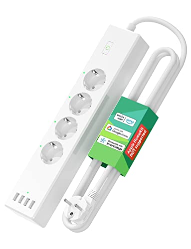 REGLETA INALÁMBRICA CON CONTROL VOZ: WiFi regleta es compatible con Amazon Alexa, Echo, Echo Dot, Google Assistant, Google Home, Nest Hub, Nest Audio y Nest Mini. Gracias a la función de control por voz, puede administrar directa y fácilmente sus dispositivos conectados a la regleta inteligente. Disfruta de una vida cómoda e inteligente.