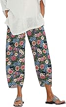 Womens Summer Floral Boho Lightweight Oversize Palazzo TrousersCasual Pants Elastic Waist Pants with Pockets