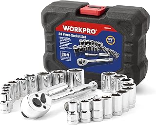 WORKPRO 24 Piezas- Juego de llaves de vaso con carraca de 3/8 ", Juego de Llaves de Vaso Cr-V, incluye Llave de Trinquete,Ideal para bricolaje, reparación de automóviles