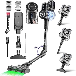 🏆【Aspiradora de 3 en 1 & Lámpara LED de cepillo de suelo】Aspiradora escoba sin cable inalámbrica también está equipada con un cepillo de brecha desmontable, un cepillo de sofá y un cepillo de polvo, que pueden absorber fácilmente el polvo en el sofá, el teclado o las grietas en espacios reducidos. El cepillo de suelo transparente verde LED puede detectar claramente el polvo fino, tanto durante el día como en negro, haciendo que la basura sea más tridimensional y sin preocuparse por los residuos de basura.