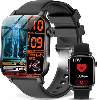 Experiencia Única de Linterna LED & Compatibilidad – Este reloj inteligente hombre está equipado con una linterna, con un alcance de iluminación de hasta 3-8 metros, lo que lo convierte en una fuente de luz confiable, le permiten iluminar rápidamente la oscuridad, para satisfacer las necesidades diarias y al aire libre. El smart watch es compatible con la mayoría de los teléfonos inteligentes con Android 6.0 e iOS 10.0 o versiones superiores.