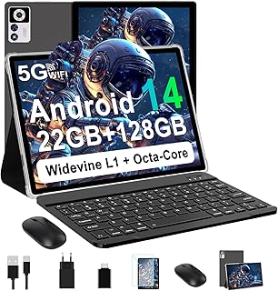 ZIOVO Android 14 Tablet 10 Pulgadas, 22GB RAM+128GB ROM (TF 1TB), 5G WiFi, Widevine L1/Octa-Core/2.0 GHz/8000mAh/Cuerpo Metálico/8+5MP/Tablet 2 en 1 con Teclado y Ratón- Negro