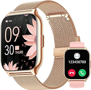 💫Nueva Pantalla Ultra Clara! A diferencia de los relojes Bluetooth tradicionales, reloj inteligente mujer adopta la resolución de 240 * 296 y la gran pantalla de 2 pulgadas hace que cada movimiento sea más nítido y cada letra sea más grande. La smartwatch mujer tecnología de mejora de la pantalla mejora considerablemente los detalles de la pantalla, ajustando 5 niveles de brillo de la pantalla para una mayor visibilidad en las zonas más oscuras o más iluminada.
