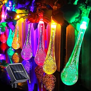 【Cadena de luces solares】: diseño realista y vibrante de gotas de agua con 30 bombillas LED de baja emisión de calor. Estas luces funcionan al 100 % por el sol y tienen una alta tasa de conversión de energía, para que no necesite gastar dinero en facturas de luz, puede disfrutar de un ambiente cálido y romántico.