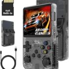 Bewinner Consola de videojuegos portátil retro de 3,5 pulgadas, con soporte Linux/Garlic de doble estilo, consola retro con joysticks 3D dobles (negro transparente), 64 G