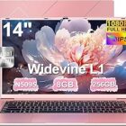 Ordenador Portátil 14 Pulgadas Celeron N5095 Upto 2,9 GHz Portatiles 8GB RAM 256GB SSD TF 1TB LPDDR4 Win11 5G WiFi 1920*1080 FHD Widevine L1 Laptop Película Protectora Español – Oro Cuerpo Metálico