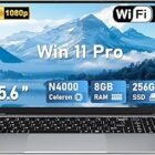 FUNYET Ordenador Portátil 15.6 Pulgadas Celeron N4000, Portátil 8GB RAM LPDDR4 256GB SSD, Win 11, Convertible 180°Portatil Laptop IPS FHD Pantalla 1920 * 1080, BT5.0, USB3.0, HDMI, TF Card Slot, WiFi