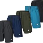 Paquete de 5 pantalones cortos de correr para hombre, de secado rápido, pantalones cortos deportivos con bolsillos y cintura elástica
