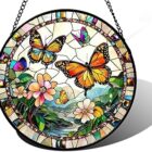 DASTOLL Stained Glass Window Hanging, Butterflies Flying in The Sky Suncatcher for Doors Home Sun Catchers Decoration and Christmas, Mother’s Day Birthday Gifts for Women, Men, and Mom 6.3 in