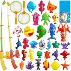 CozyBomB™ Magnetic Fishing Toys Game Set for Kids | Water Table Bathtub Kiddie Pool Party Pole Rod Net, Outdoor Plastic Floating Fish, Toddler Bath Color Ocean Sea Animals Birthday Gift Age 3-5 6 4-8